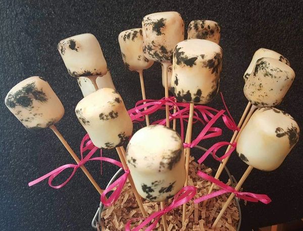 Large marshmallow dipped in chocolate on a stick. Minimum of 1 Dozen for purchase.